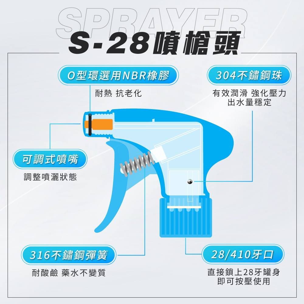 使用方法· 直接鎖上噴頭即可按壓使用。 · 因不同店家的每款清潔劑酸鹼值皆不同, 建議噴頭使用完以清水清潔噴槍頭,以利延長噴頭壽命。 |