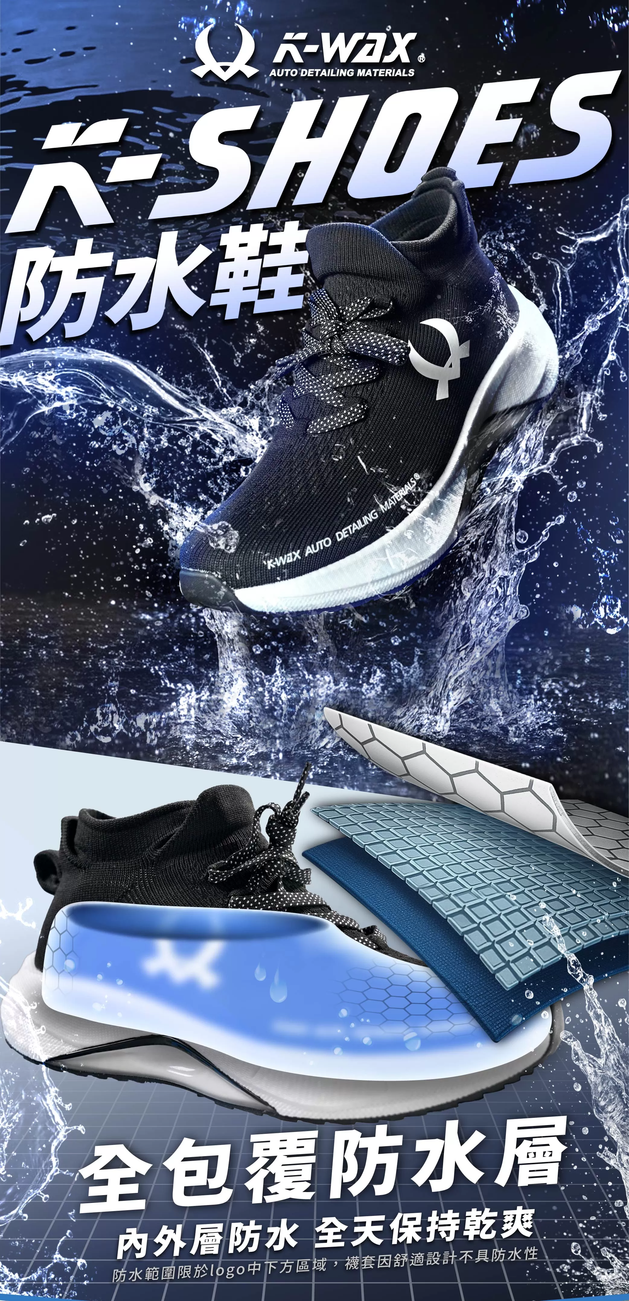 【K-SHOES】|防水鞋,高機能鞋緩震鞋底,台灣製造 | K-WAX 汽車美容材料