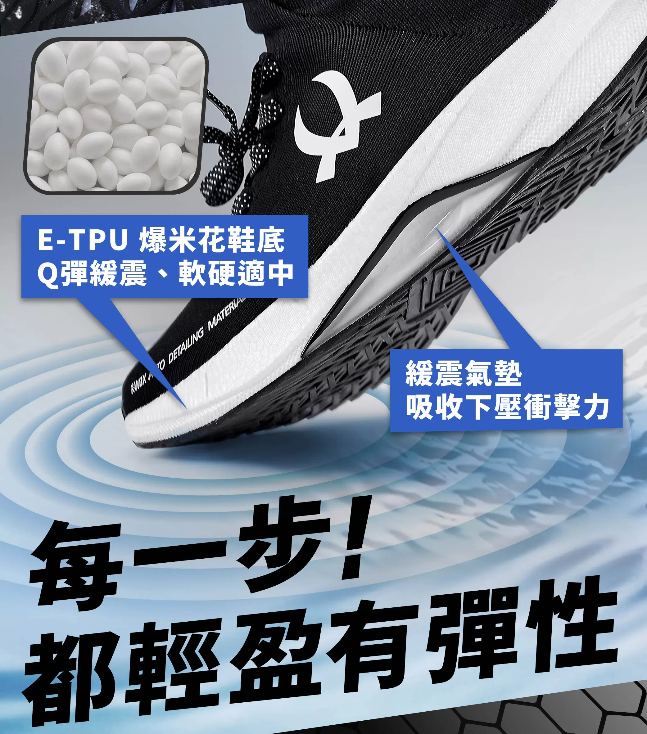 • E-TPU彈性鞋底,步步輕盈舒適