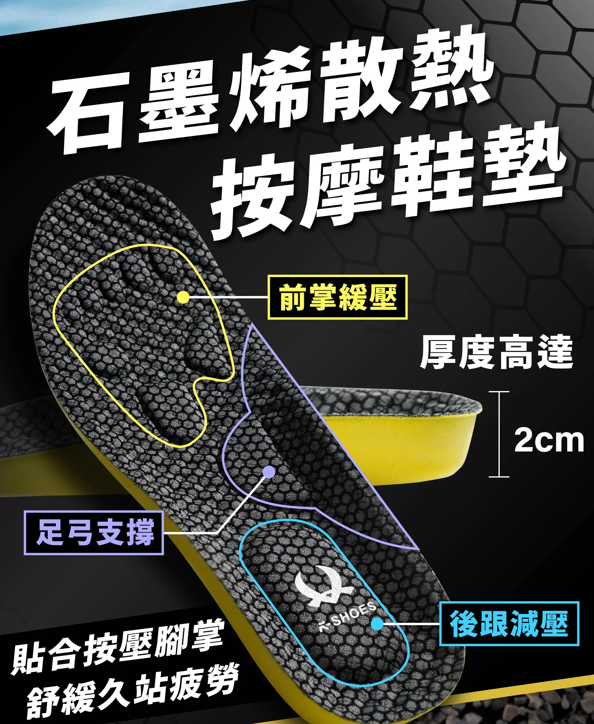 • 石墨烯按摩鞋墊,舒緩久站疲勞
