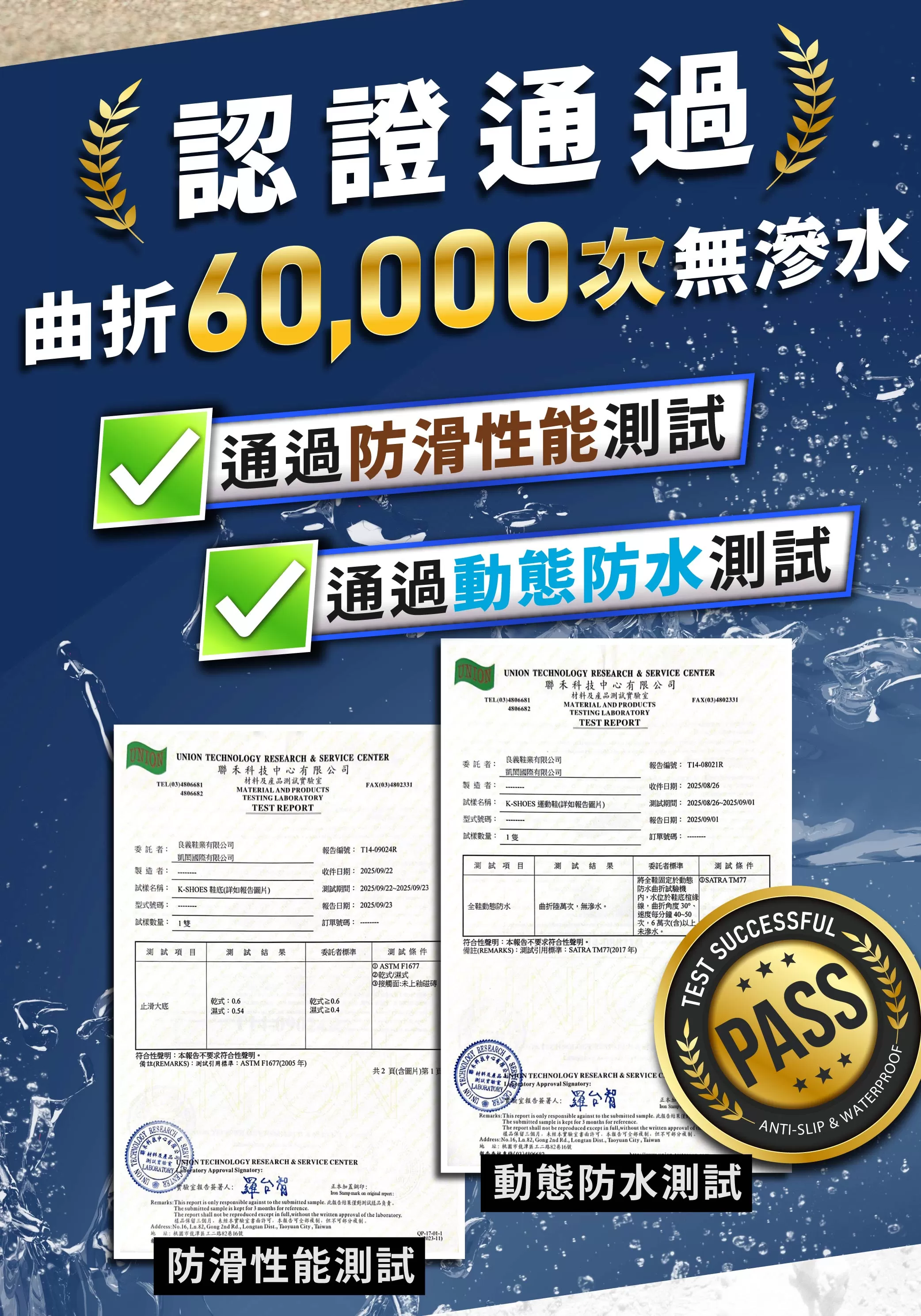 • 通過ASTM防滑與SATRA防水雙測試