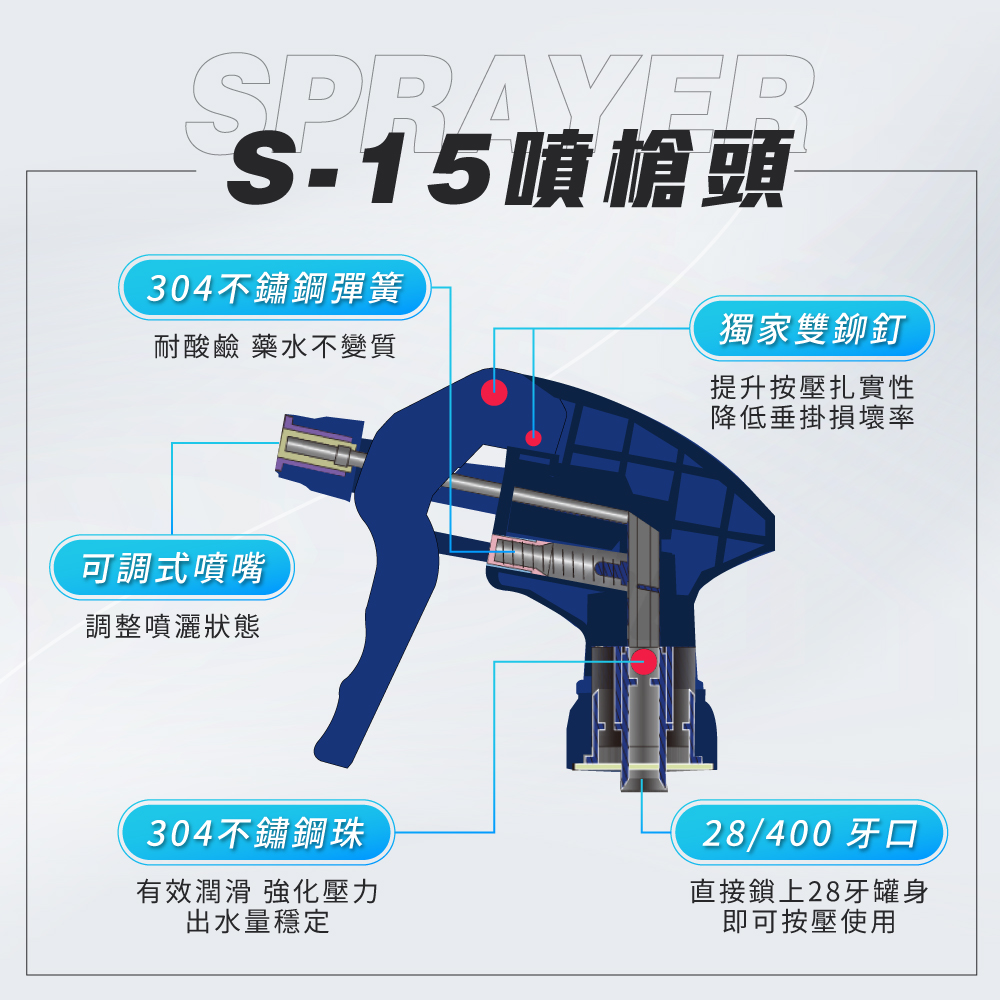 使用方法· 直接鎖上噴頭即可按壓使用。 · 因不同店家的每款清潔劑酸鹼值皆不同, 建議噴頭使用完以清水清潔噴槍頭,以利延長噴頭壽命。 |