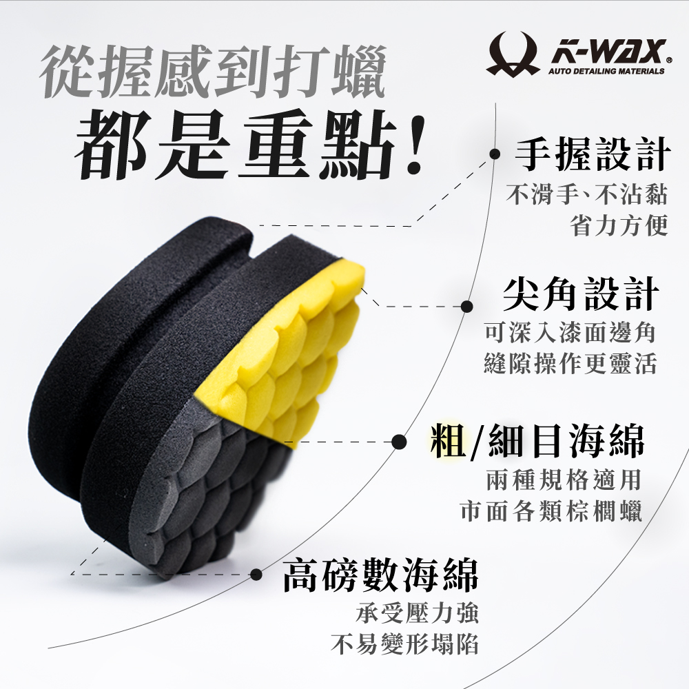 【打蠟海綿 - 手握式】|水滴型設計,零死角施工打蠟更靈活,粗細目兩款 | K-WAX 汽車美容材料