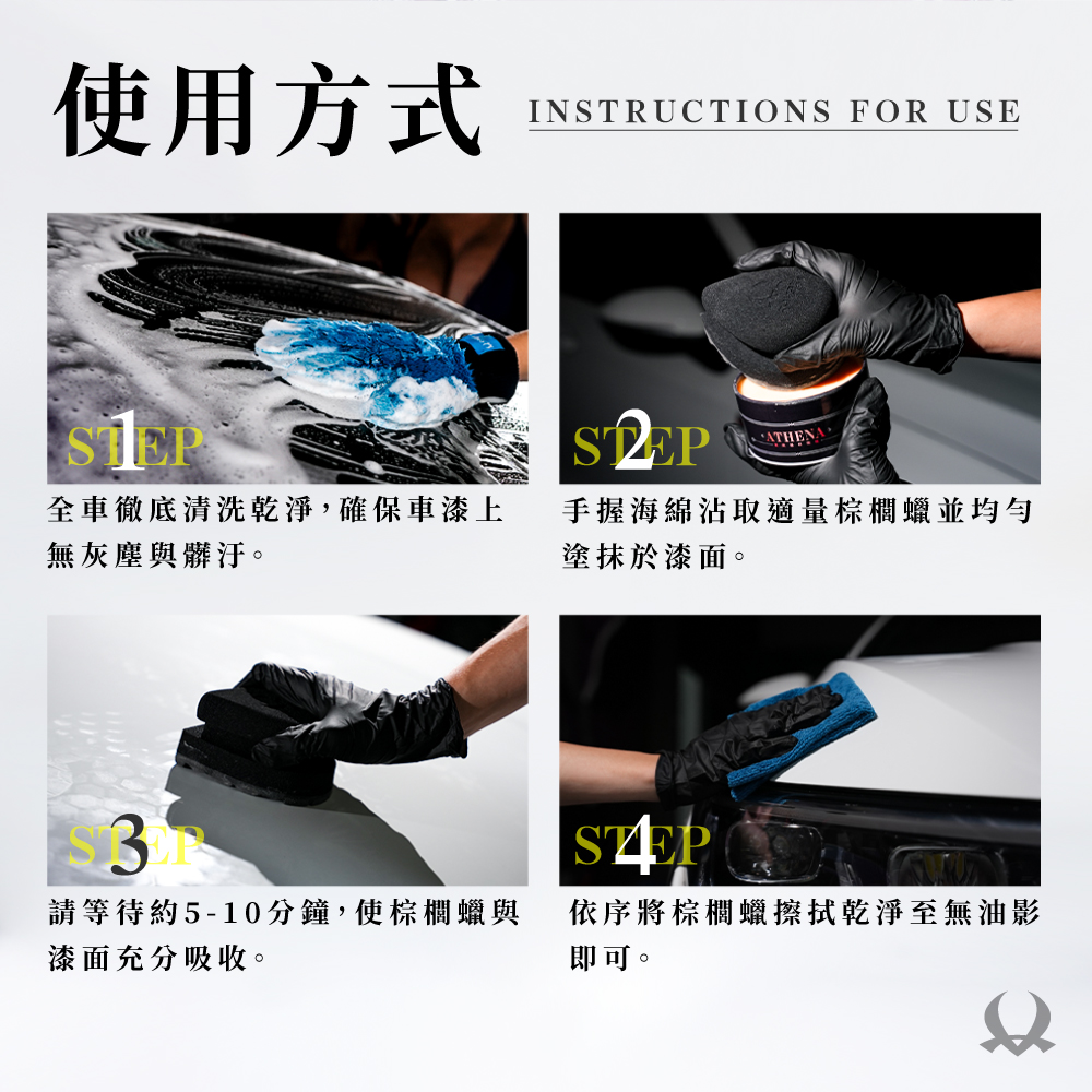 - 等待5-10分鐘,使漆面吸收棕櫚蠟
