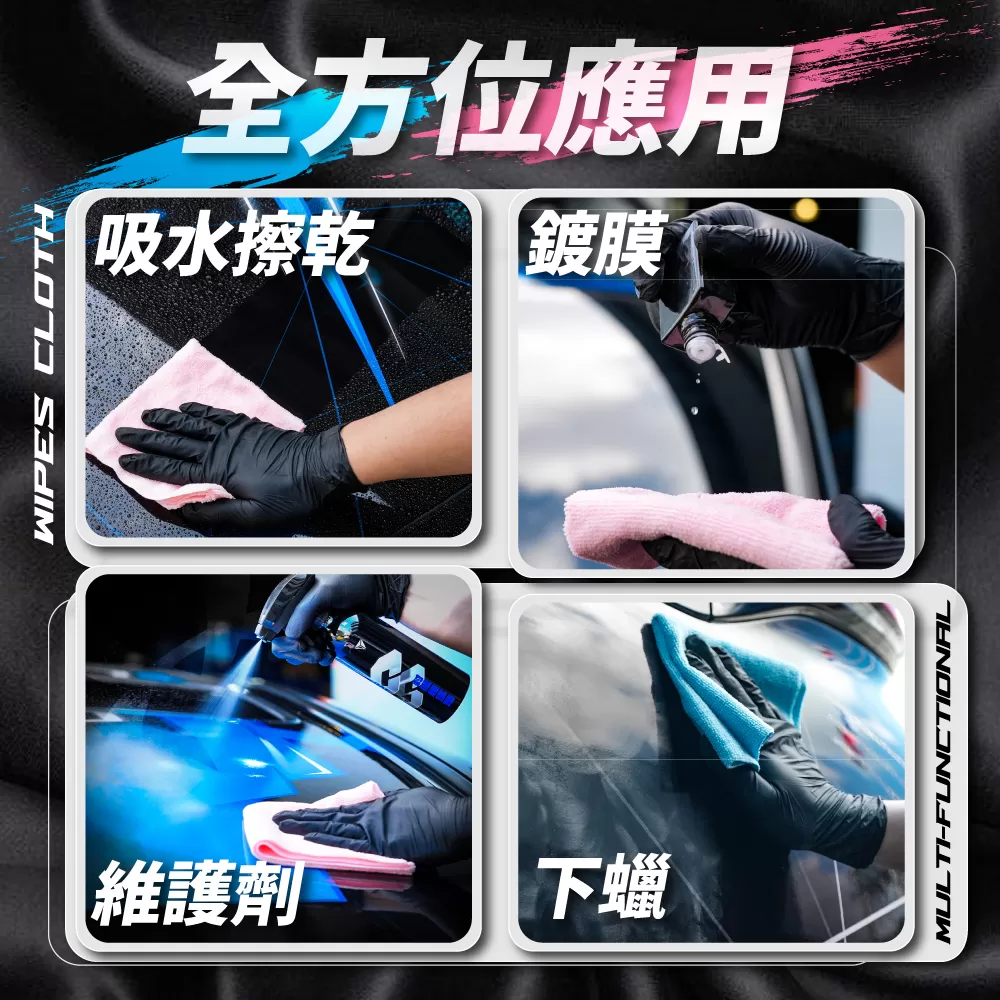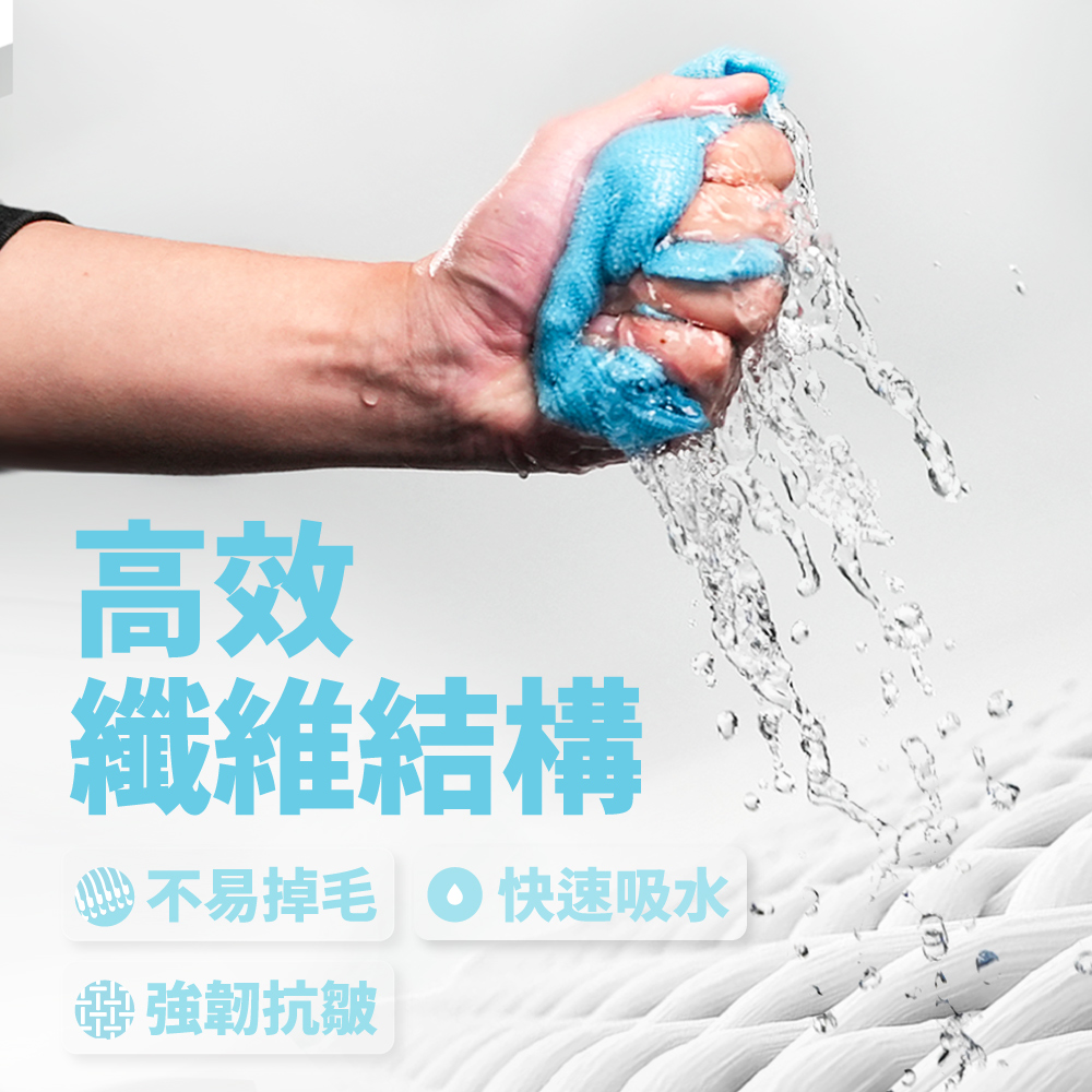 - 迅速清潔,高效纖維結構,快速吸附水滴與髒汙,一抹即淨