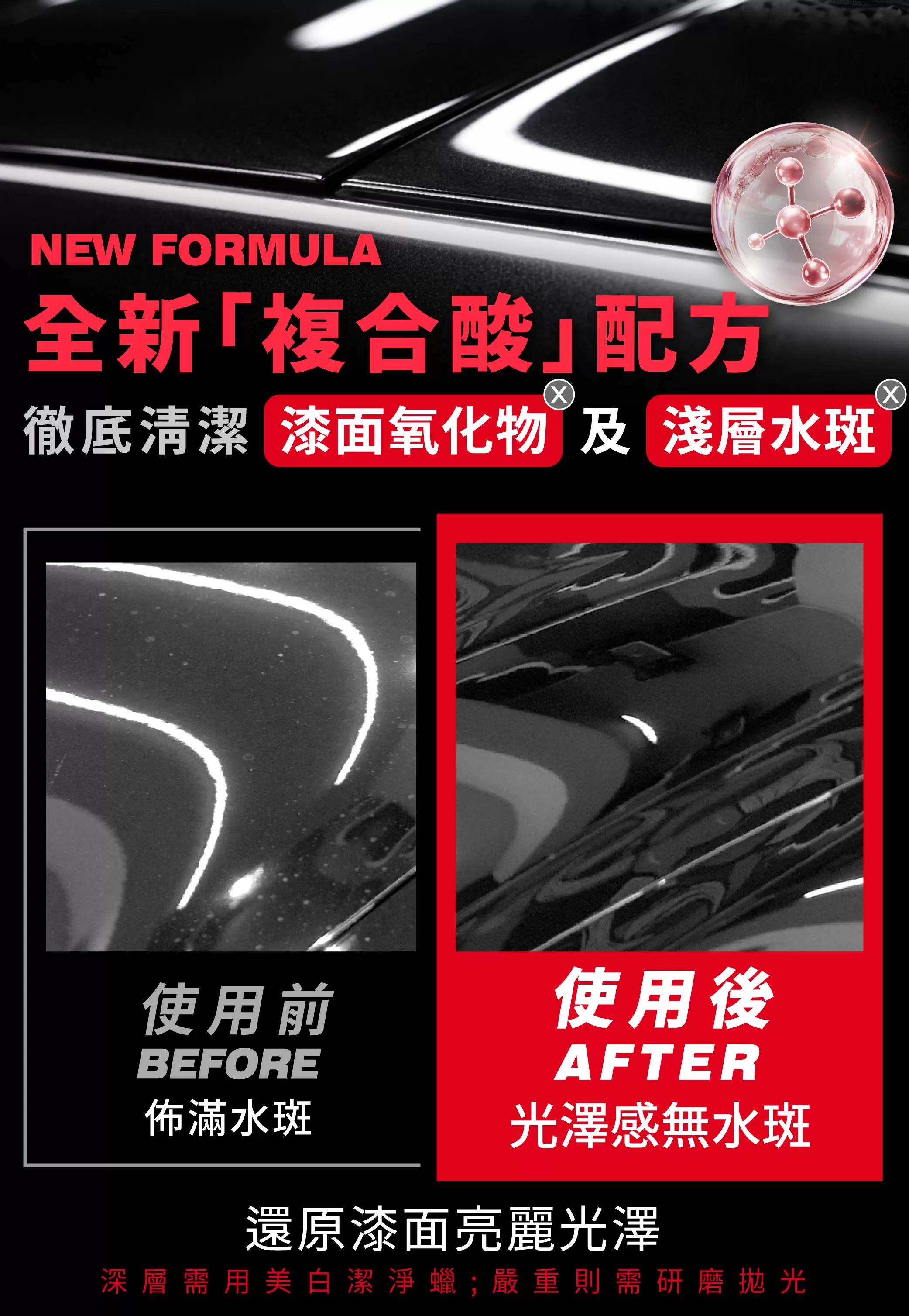 • 可溫和地移除漆面氧化物及水斑等髒污。