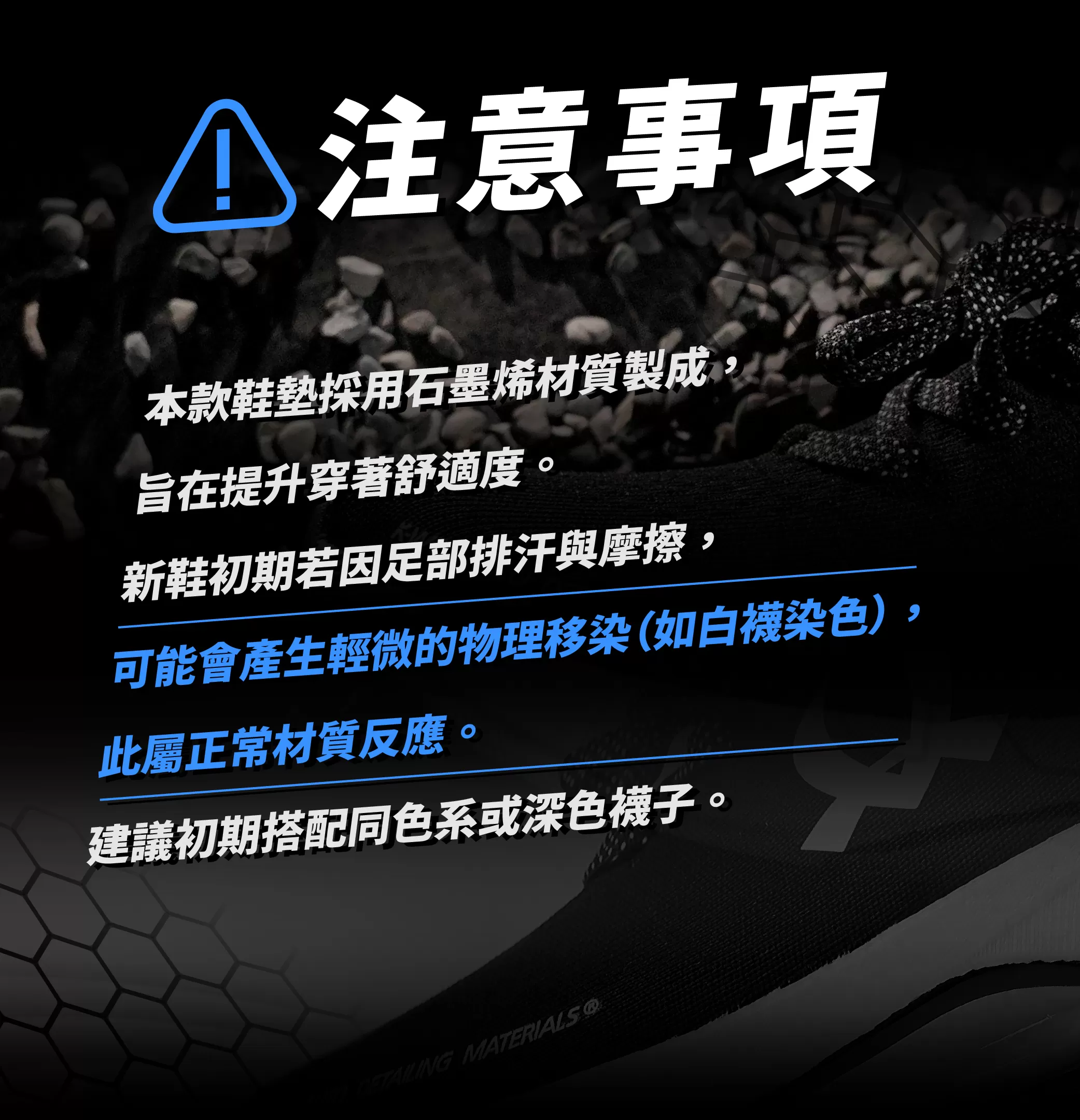 - 本款鞋墊採用石墨烯材質製成,旨在提升穿著