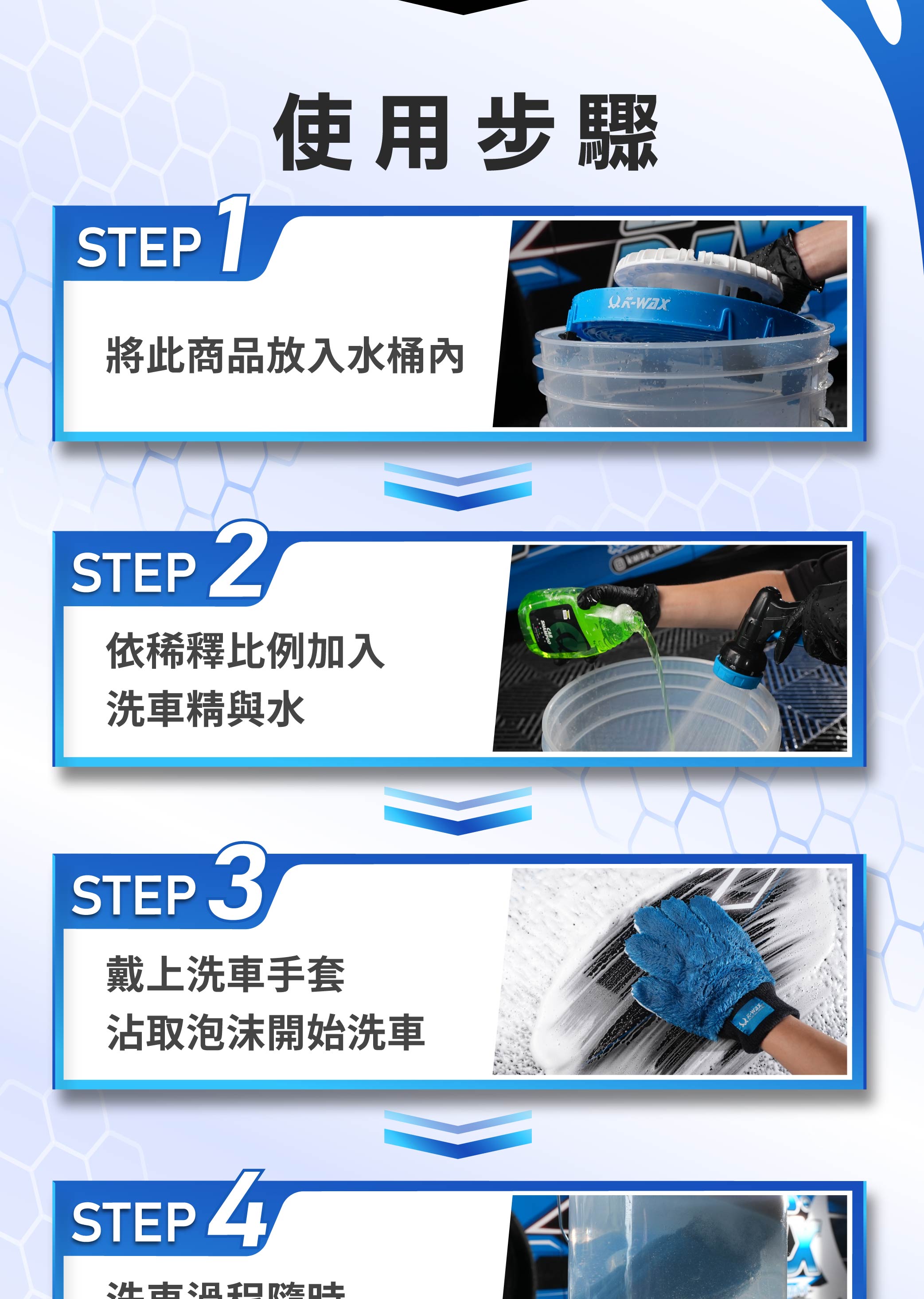 - 洗車過程中隨時清潔手套與刷具,保持乾淨無髒污