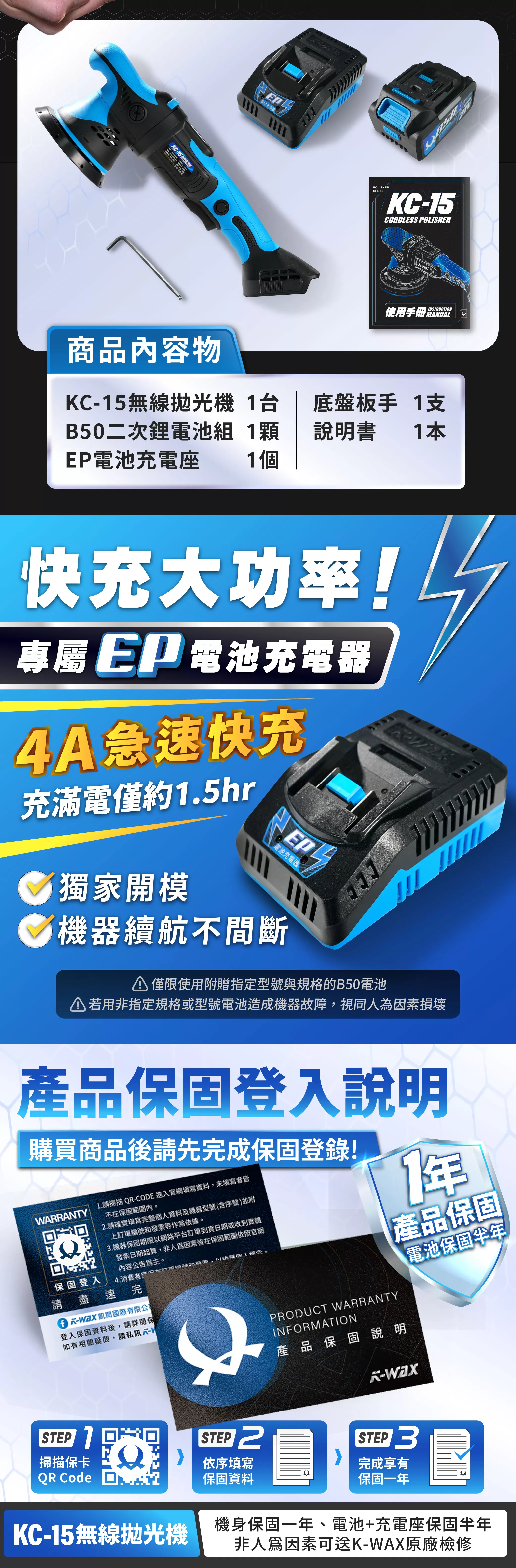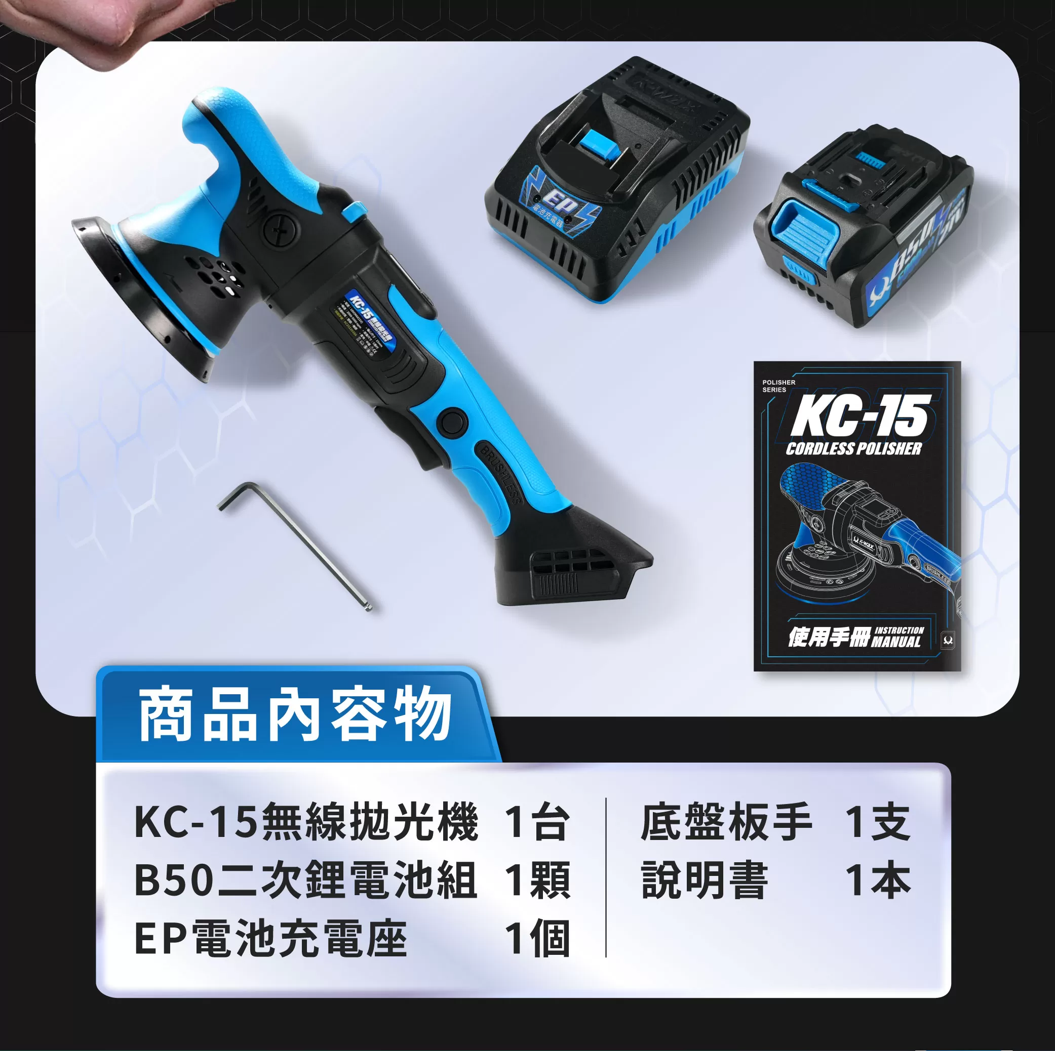 KC-15無線拋光機 無碳刷電機高效輸出、扭力強勁,動力持久 | K-WAX 汽車美容材料