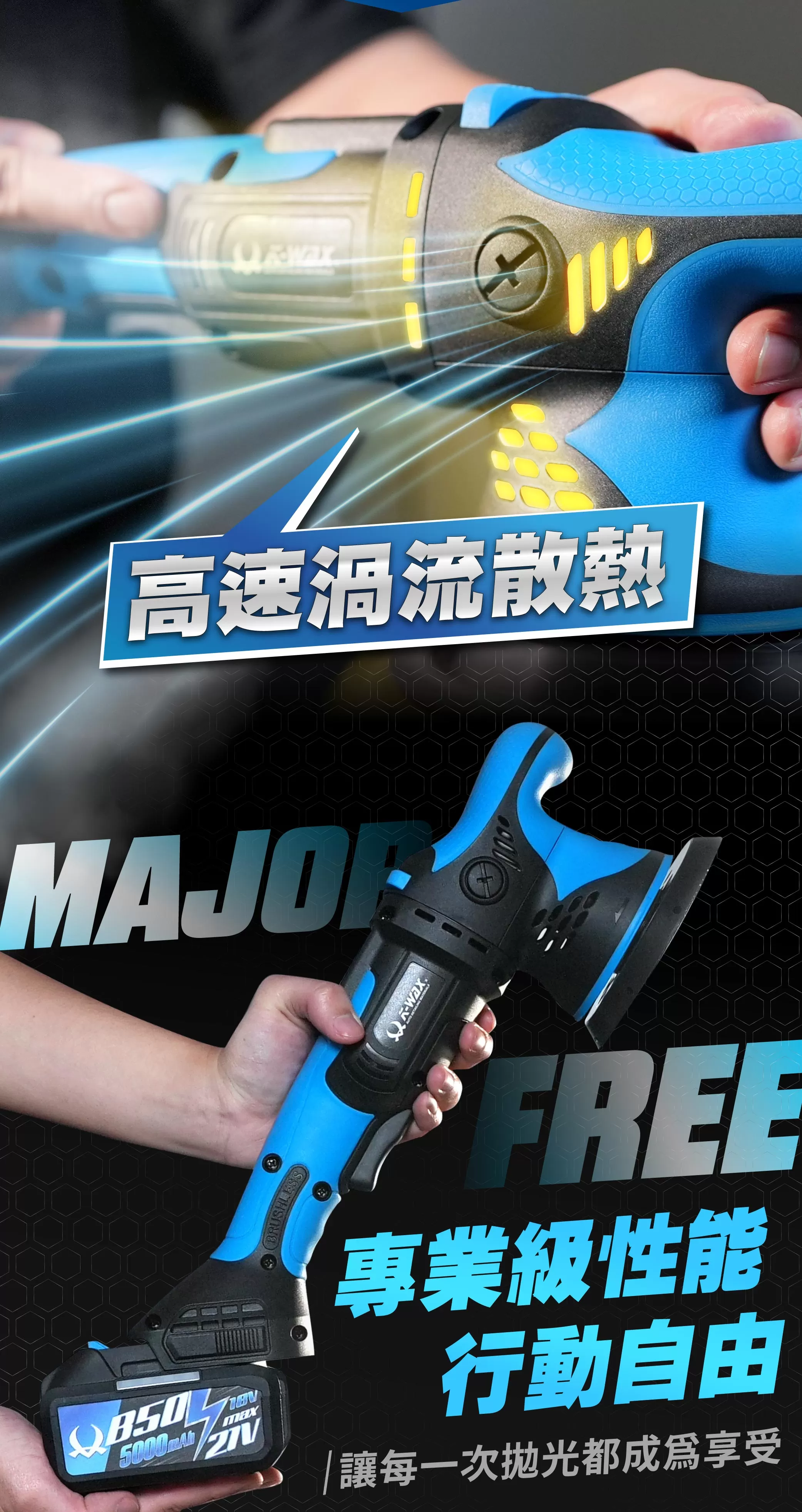 - 真無線設計擺脫電線限制,施工動線自由,DIY 或專業汽車美容施工皆適用。