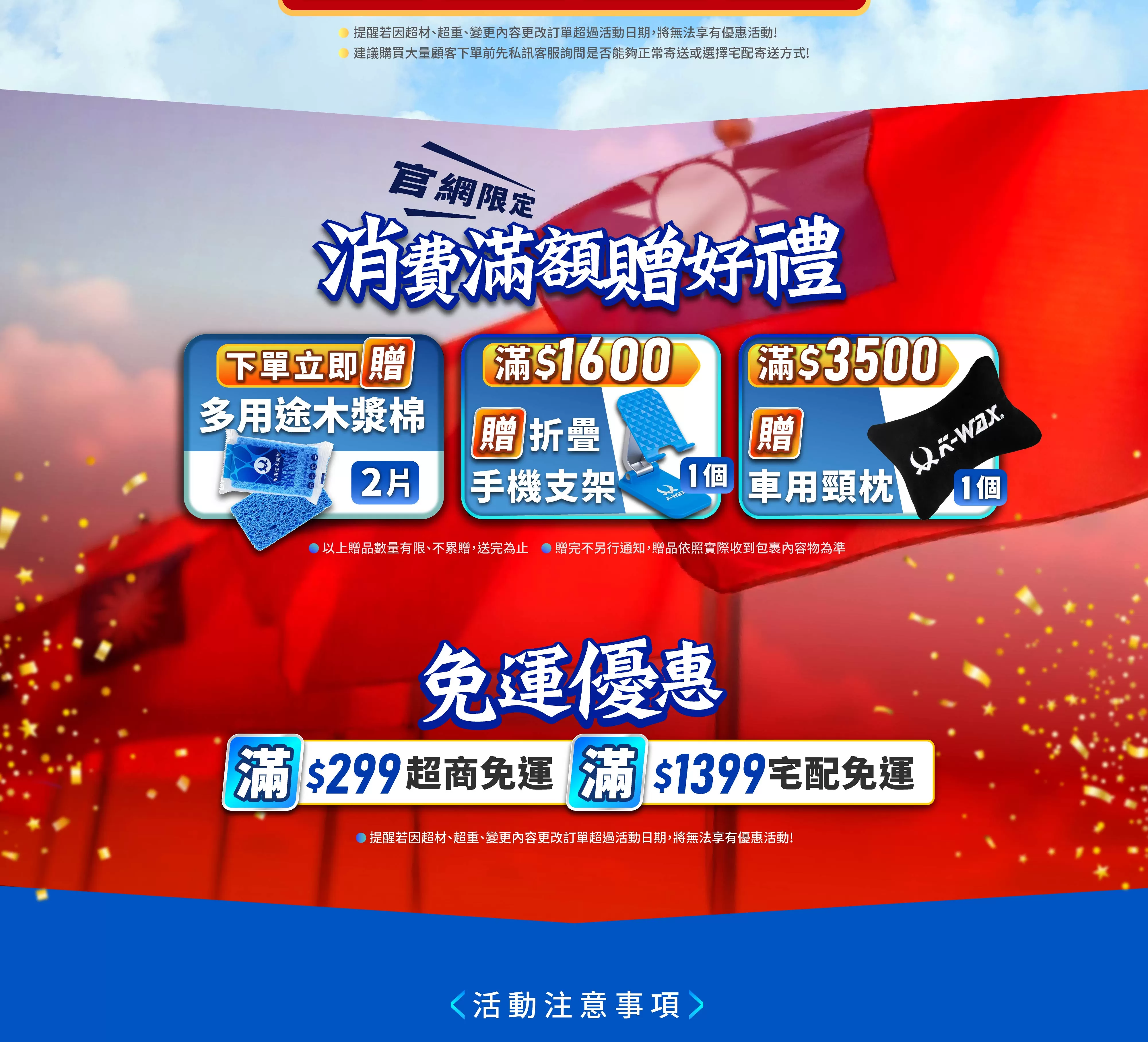 - 提醒若因超材、超重、變更內容更改訂單超過活動日期,將無法享有優惠活動!